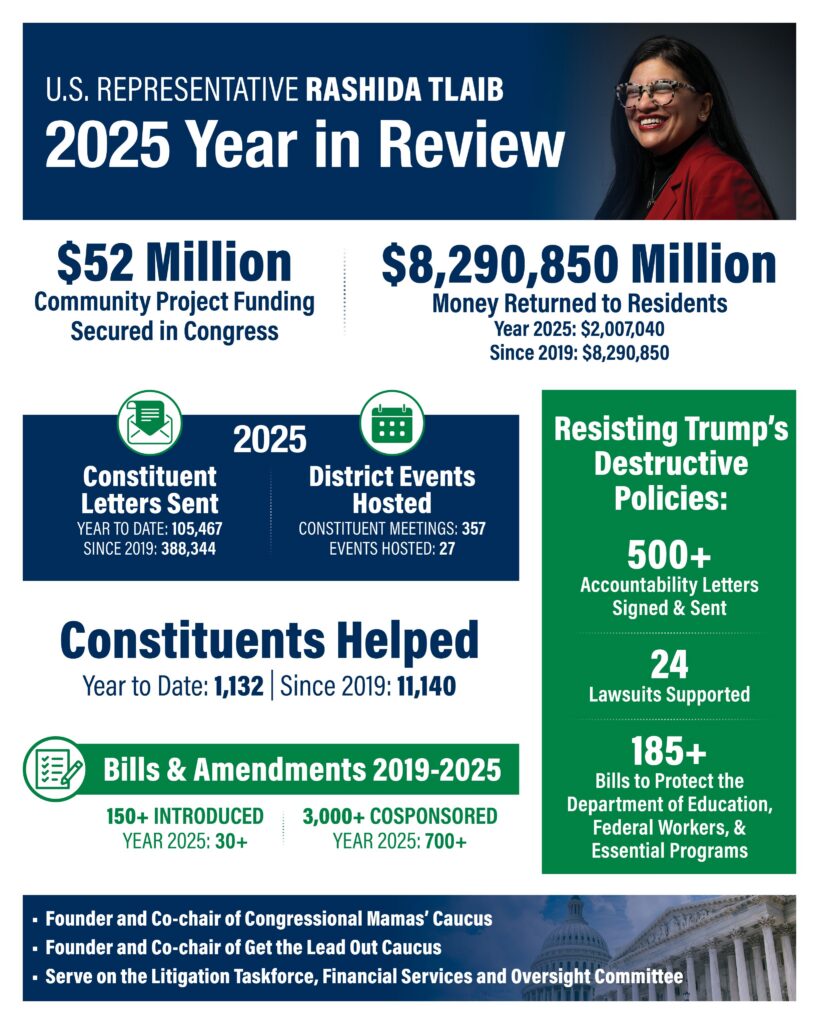 Michigan’s 12th Congressional District is home to some of the most vulnerable communities in our nation. It is so important that our communities have access to resources that result in a better quality of life. We are championing issues like raising the minimum wage and the Green Jobs Act, preventing insurance redlining, expanding the Earned Income Tax Credit, and protecting low-income housing. These are all initiatives that improve residents’ financial health and put them on a path toward prosperity and stability.